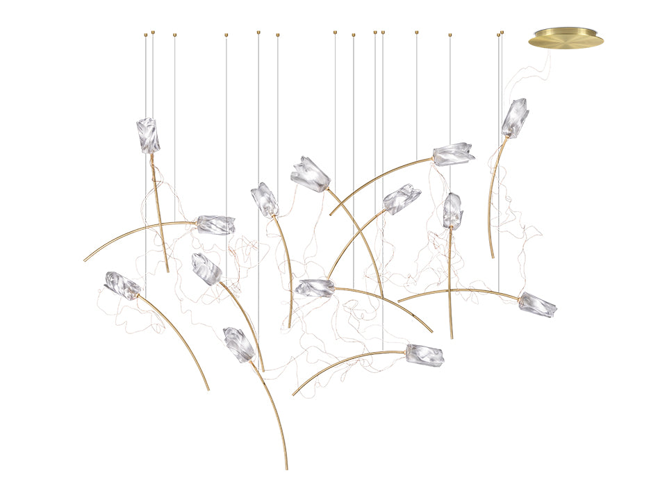 TULIP 14 LINEAR SUSPENSION by Marc Sadler,TRANSPARENT / BRASS,80 x 40,5 x h.7,5cmcm.5W (110-220Vac/24Vdc)